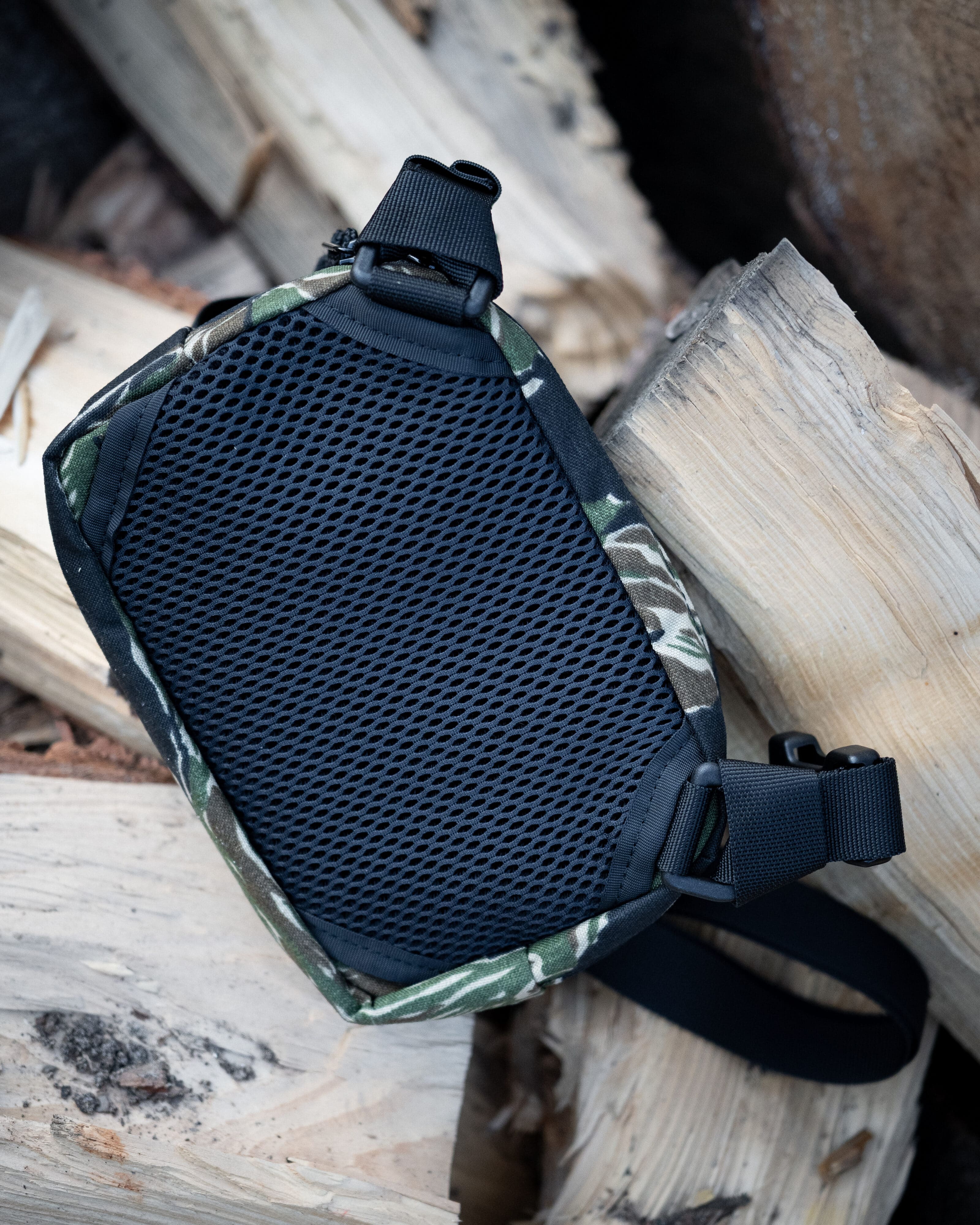 Um die Tasche bequem Tragen zu können, wurde auf der Rückseite Mesh vernäht zur Feuchtigkeitsregulierung. Trotz allem kann der Cross Pack natürlich auch als Fanny Pack getragen werden.